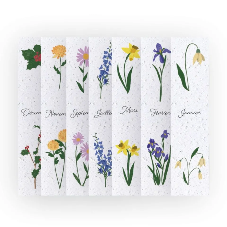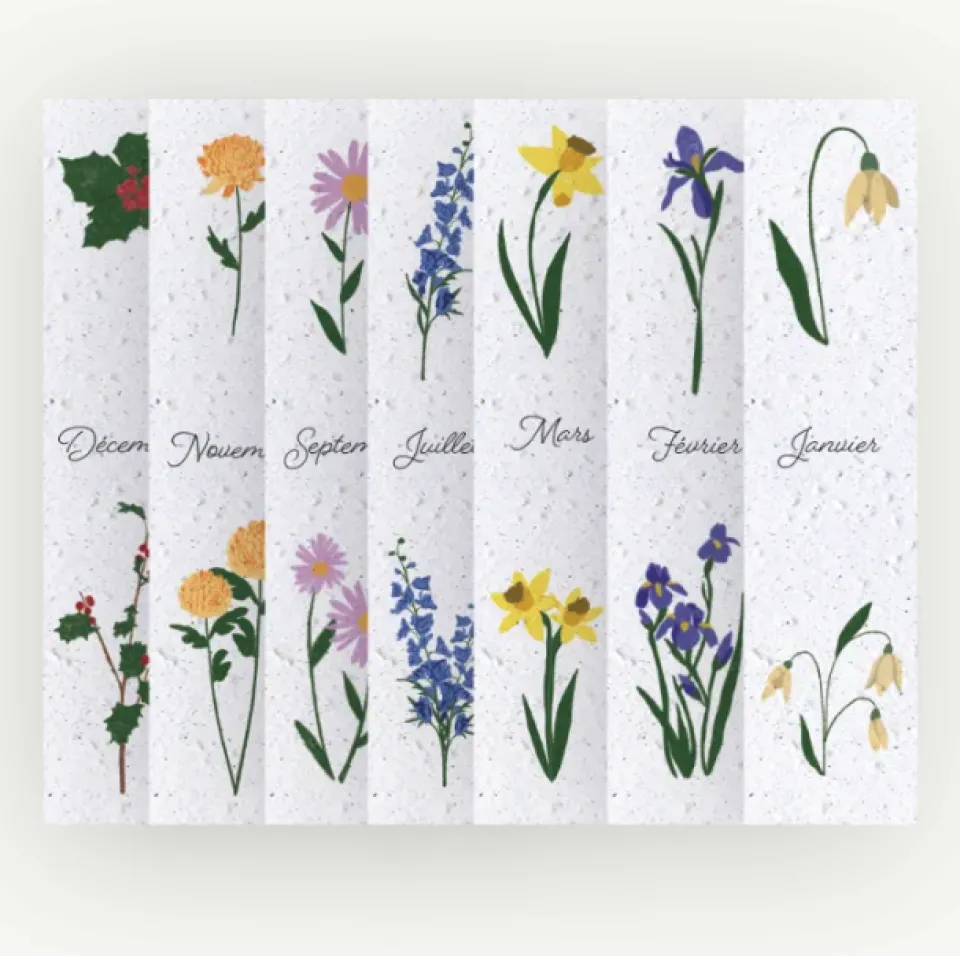 Des marque-pages biodégradables imprimés sur du papier ensemencé de haute qualité, composé de matériaux durables et respectueux de l’environnement. Une fois le mois passé et vos lectures terminées plantez le marque page ! Un joli cadeau à garder pour soi ou distribuer à ses proches.