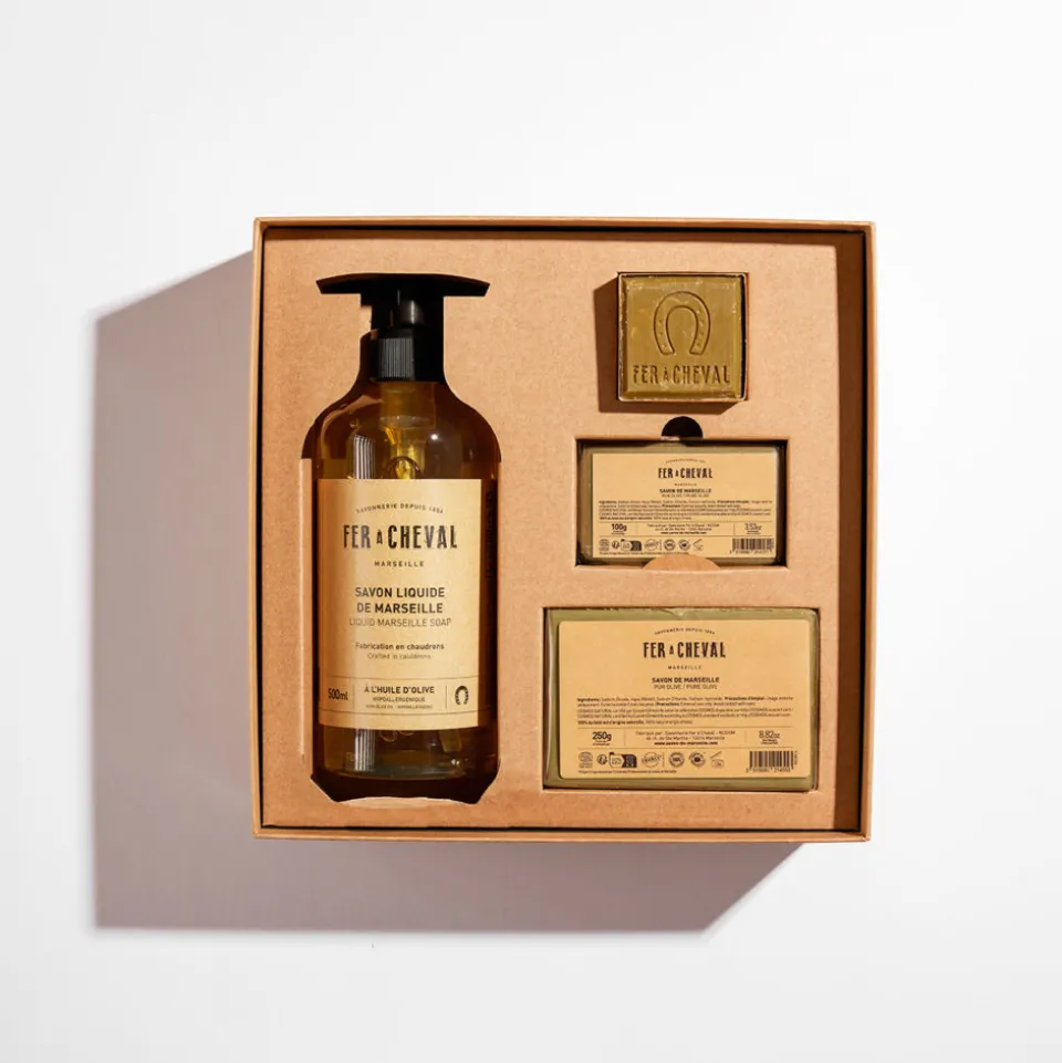 Au total, 4 savons incontournables fabriqués par la Savonnerie Fer à Cheval, plus ancienne savonnerie marseillaise toujours en activité :