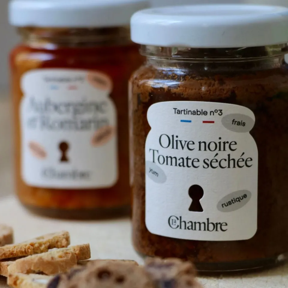 - Tartinade Olive Noire & Tomate Séchée : Olive noire façon Grèce dénoyautées 28% (olive noire 99.1%. huile d’olive). olive noire confite 28% (olive noire dénoyautées 98%. sel. stabilisant : gluconate ferreux). huile d’olive. tomate séchées 15% (tomates séchées 53%. huile de tournesol. câpres. sucre. sel. vinaigre de vin (sulfites). herbes. antioxydant : acide ascorbique. acidifiant : acide lactique et acide citrique). citron.