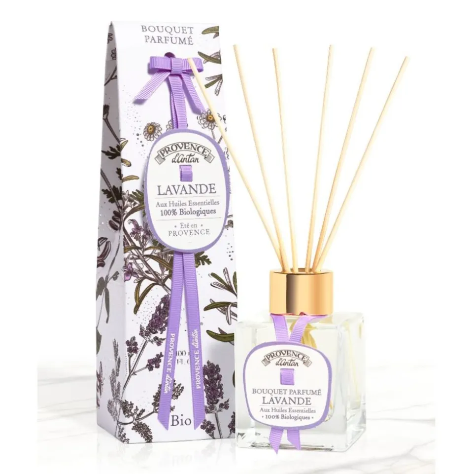 Découvrez la senteur fleurie de notre bouquet parfumé Lavande aux notes relaxantes de lavande associées à la fraîcheur dynamisante du romarin et du citron. Élaboré avec des huiles essentielles 100% d’origine biologique et contrôlé Ecocert, ce parfum naturel se diffuse par capillarité grâce à ses 6 tiges de rotin non traitées. Le bouquet parfumé Lavande peut s’utiliser dans toutes les pièces de la maison et vous transportera directement au cœur de la Provence !
