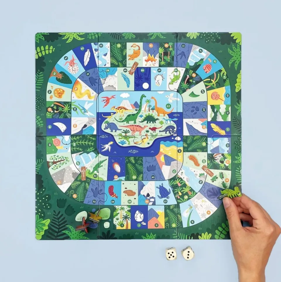 L’aventure se déroule tout au long de la célèbre spirale du jeu de l’oie pour atteindre la case 63 et rejoindre l’île aux dinosaures. Les cases « passages secrets » et « raccourcis » aident à aller plus vite mais attention aux différents pièges sur le chemin !