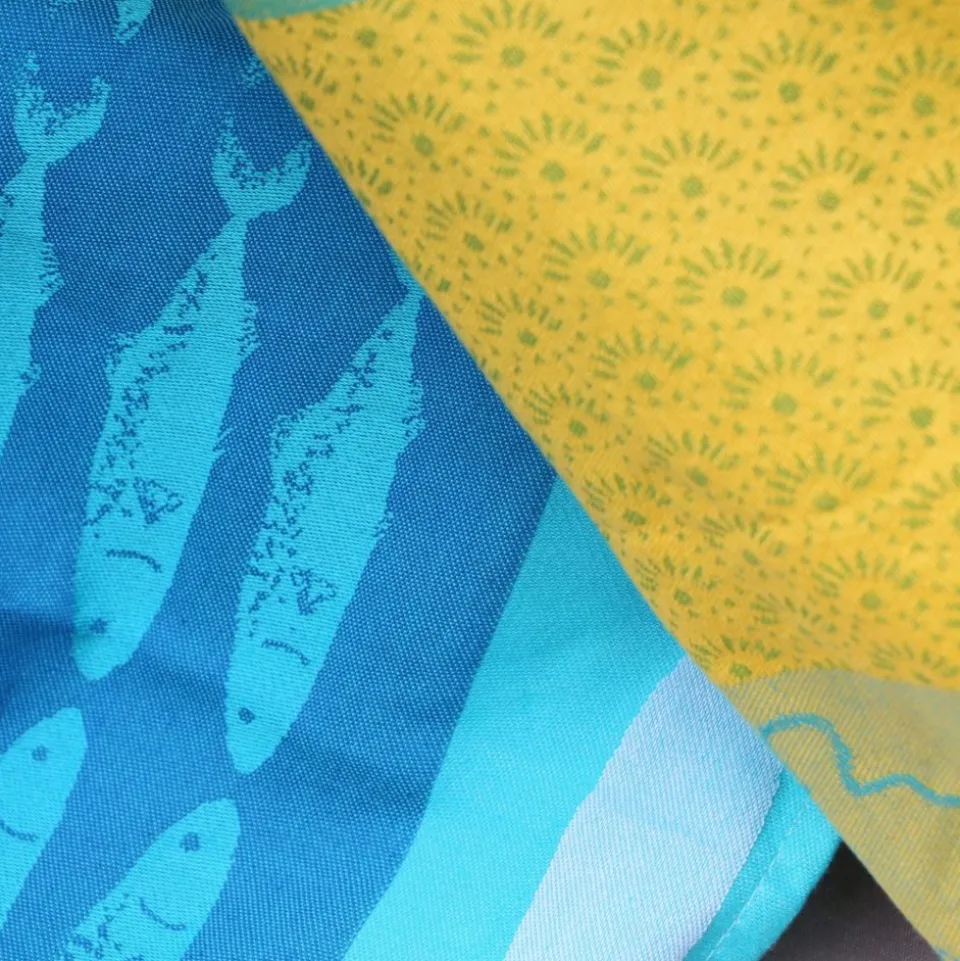- Le torchon « Poissons », dessiné par Tissage Moutet, met de la couleur dans la cuisine. Très graphique, il est idéal pour mettre une touche d’originalité dans votre cuisine. Il fera plaisir à tous les amoureux de me