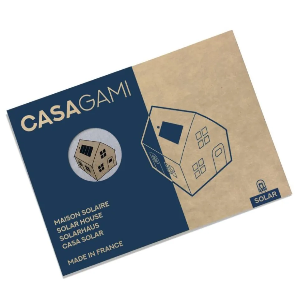 Une petite veilleuse en carton à monter soi-même qui s’illume grâce à une LED fonctionnant à l’énergie solaire.
