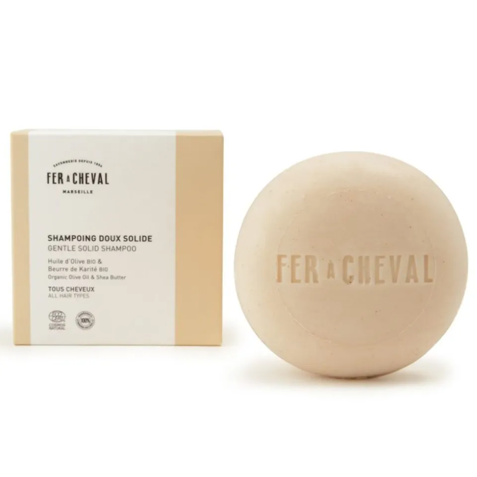 Découvrez le shampoing doux solide, enrichi en huile d’olive et en beurre de karité bio, qui nettoie avec délicatesse et prend soin des cheveux de toute la famille*.