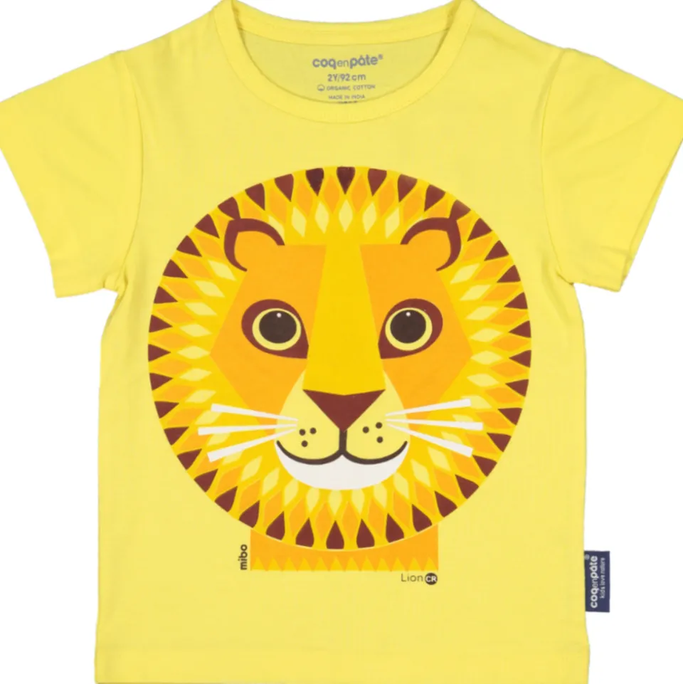 Sensibilisez votre enfant à la protection des animaux sauvages avec ce t-shirt jaune soleil et son motif lion 100% coton biologique ! Avec sa couleur estivale, ce t-shirt fera des petits heureux.