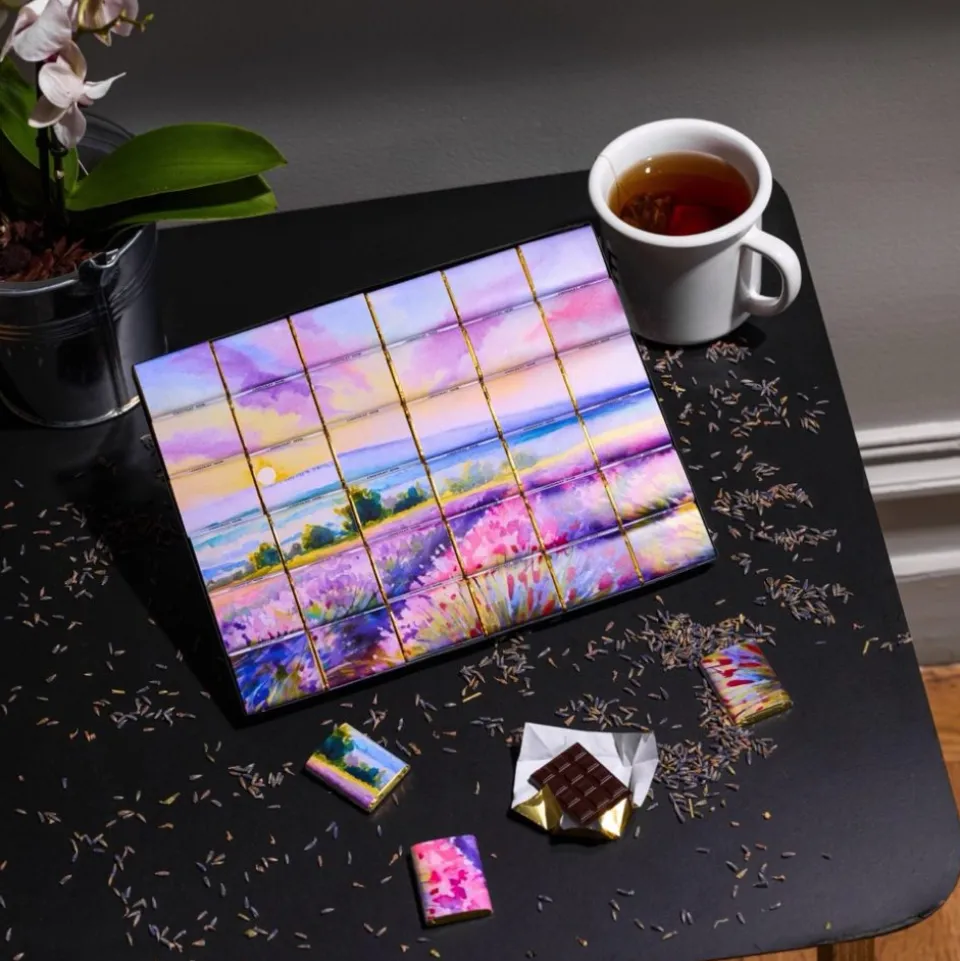 Plongez dans un univers de délicatesse et d’art avec notre coffret de 36 napolitains au chocolat noir, habillés d’un somptueux emballage aux couleurs rose et lavande, inspiré du style impressionniste. Ce coffret est une véritable fusion entre la gourmandise et l’esthétique artistique.