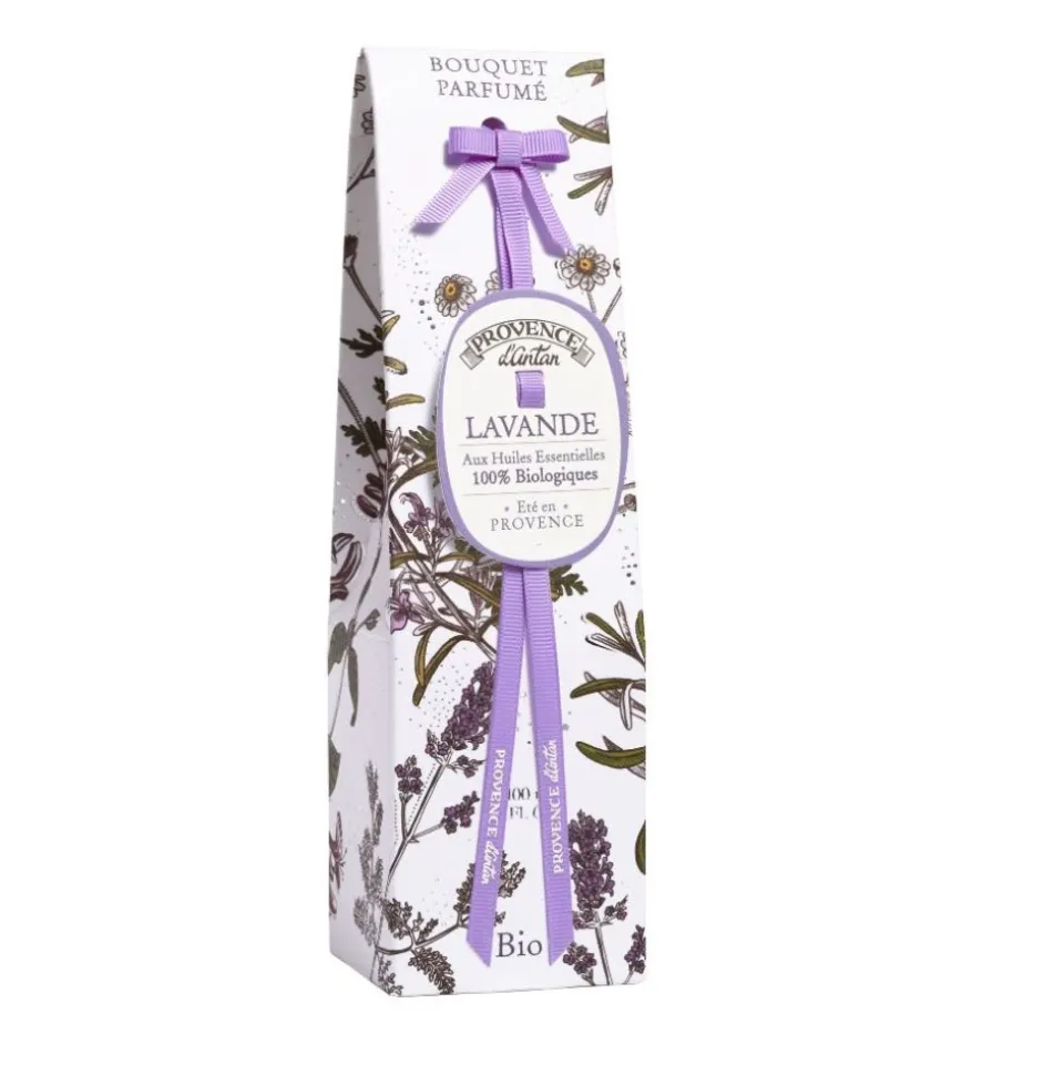 Découvrez la senteur fleurie de notre bouquet parfumé Lavande aux notes relaxantes de lavande associées à la fraîcheur dynamisante du romarin et du citron. Élaboré avec des huiles essentielles 100% d’origine biologique et contrôlé Ecocert, ce parfum naturel se diffuse par capillarité grâce à ses 6 tiges de rotin non traitées. Le bouquet parfumé Lavande peut s’utiliser dans toutes les pièces de la maison et vous transportera directement au cœur de la Provence !