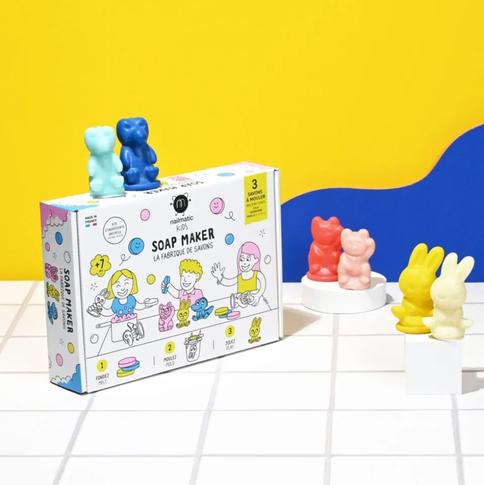 Ce kit DIY permet de fabriquer 3 savons en formes de chat, lapin et crocodile.