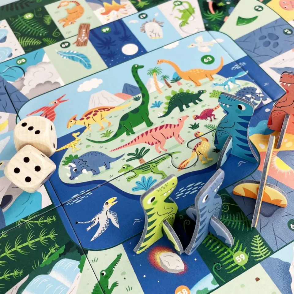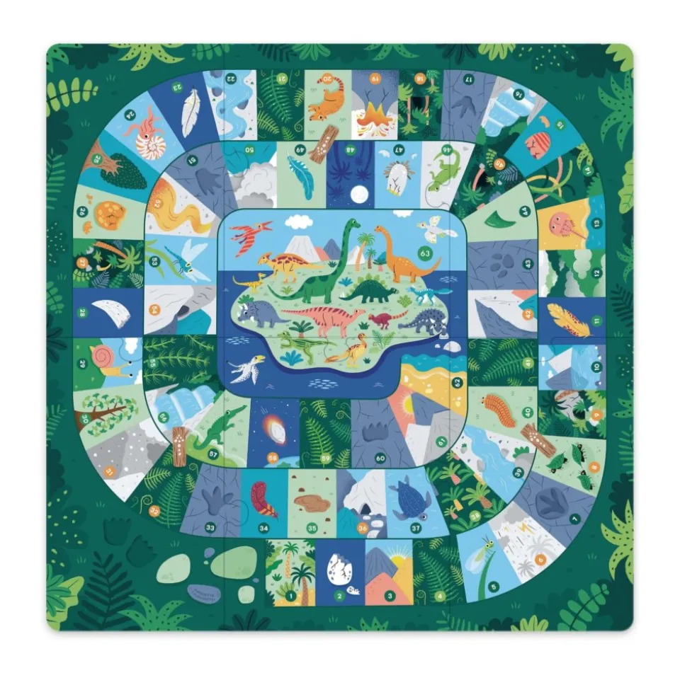 L’aventure se déroule tout au long de la célèbre spirale du jeu de l’oie pour atteindre la case 63 et rejoindre l’île aux dinosaures. Les cases « passages secrets » et « raccourcis » aident à aller plus vite mais attention aux différents pièges sur le chemin !
