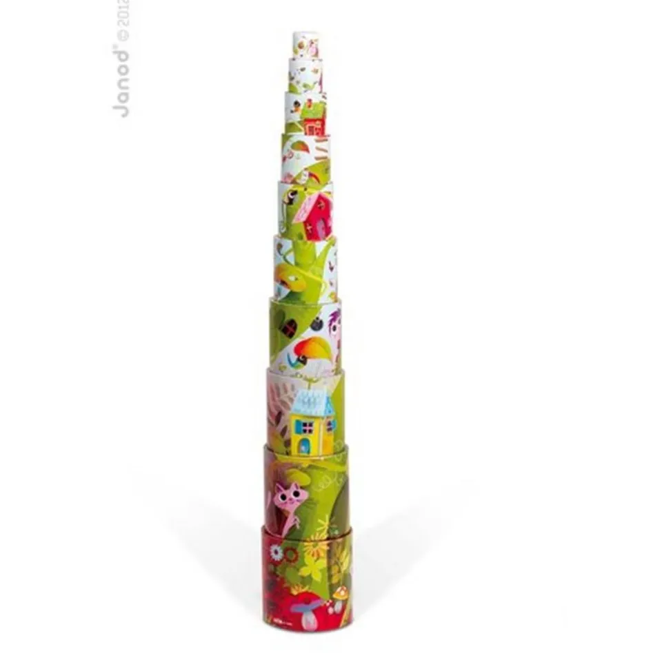 Sur le thème de l’arbre magique, cette pyramide, riche en couleurs avec son illustration pleine de détailles amusants, constitue aussi un puzzle vertical.