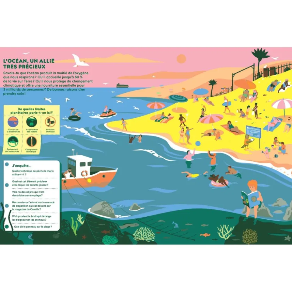 Tu t’es peut-être un jour demandé à partir de combien de forêts coupées les animaux sont en danger ? Ou combien de produits chimiques la planète peut supporter ? Une équipe internationale de chercheurs et de chercheuses a répondu à toutes ces questions ! Avec Camille et Loulou, toi aussi, mène l’enquête sur les ressources et les limites de la planète. Et découvre tout ce que tu peux faire pour la préserver.